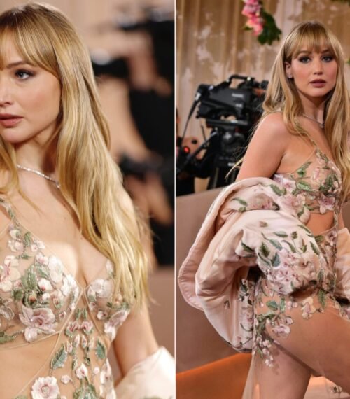 The sheer, plunging design featured side cutouts and strategically placed floral embroidery that barely covered the essentials. But the real headline here is not the nudity — it is the Deja Vu. Fashion insiders and eagle-eyed fans instantly clocked the look, and the accusations are flying fast and loose. This was not an original concept. This looked like a carbon copy of the legendary "naked dress" Beyoncé wore to the Met Gala back in 2015. You know the one — the bejeweled, sheer Givenchy masterpiece that shut down the internet for a week. For J-Law to pull up 11 years later in a nearly identical fit feels less like a coincidence and more like a desperate cry for relevance.